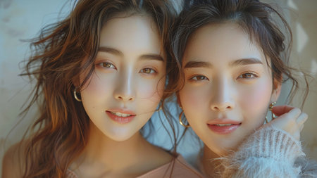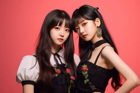 Two beautiful Asian women in a homosexual relationship, queer, gay couple, advocating sexual independence and pride in LGBTQ. Lgbt and love relationship. Supporters of the LGBT community.