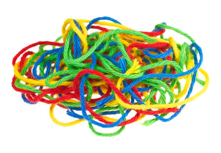 The tangled rope concept with a clew as the beginning of things, unravels the confused rope, and mental problem, or the more you solve, more busy concept