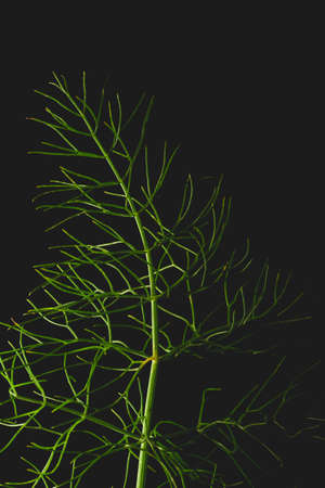 Twig of fresh dill and copy space. Sprig of green aromatic dill on slate, text space. Health benefits of dill.