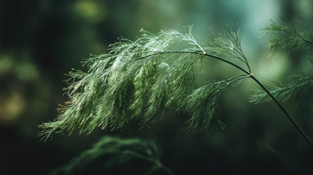 AI Generated. A Single Sprig of Fresh Dill on a Green Background
