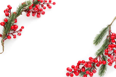 Branch of fresh small red fruit on isolated white background and clipping path, idea decorative for christmas in december.
