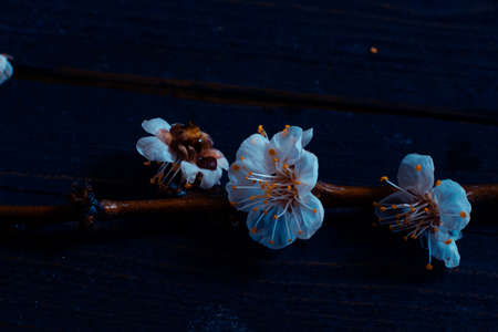 Flowering branch of a blossoming tree on a black background