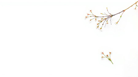 Close-up of a budding branch against a light background, minimalist nature concept