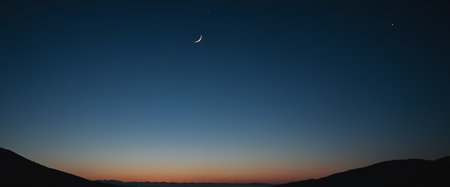 A clear sky at dusk with the first stars appearing, creating a soft gradient from blue to orange as day turns to night.