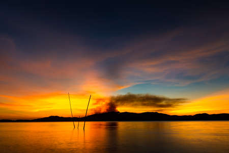 island in the Andaman sea, on the way from Myeik to Kawthong in the south of Myanmar.Fire on island.