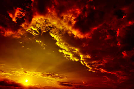 Fire clouds before sunset. Apocalyptic sky
