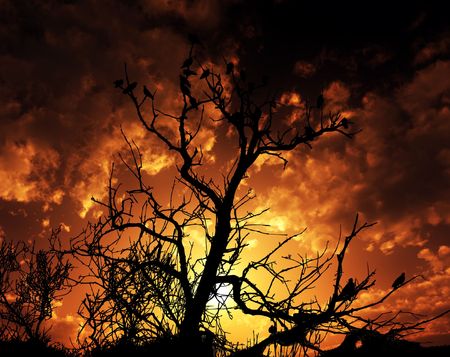 Tree silhouette on sunset