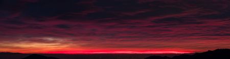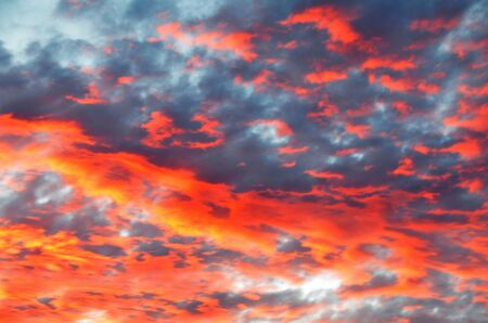 Nature background. Dramatic clouds on the sky in red colors
