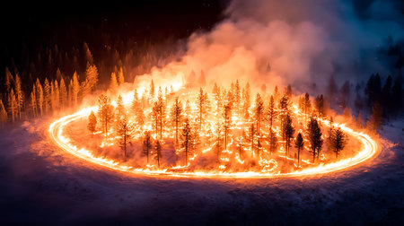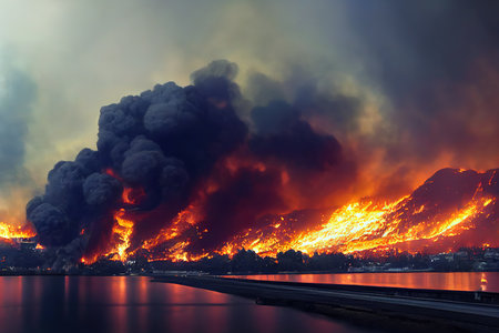 Raging fire against dark skies