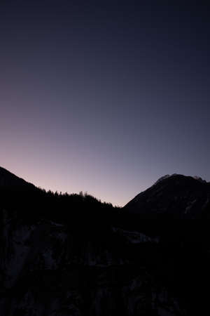 Mountain scenery view landscape with twilight sky beautiful magenta color tone theme sunset and sunrise background.