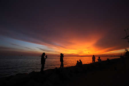 Silhouette sunset sky on sea beach with people