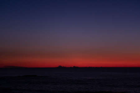 Beautiful gradient cloudless sky at dusk, from purple to red over the ocean