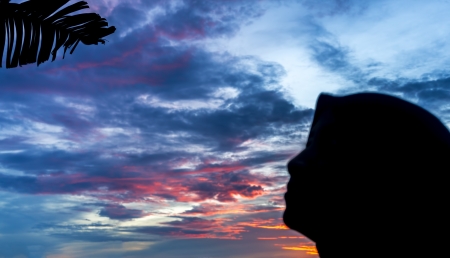 Hijab woman silhouette with sunset background