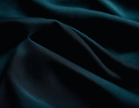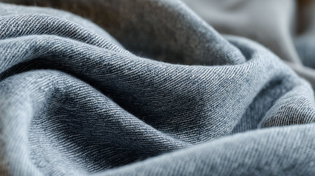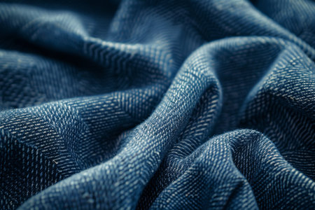 Exploring the lush textures and deep hues of denim fabric, this macro shot highlights the elegant folds and movement, inviting viewers into a world of textile artistry and craftsmanship.