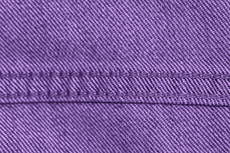 Blue work uniform clothes with an orange stripe. Close-up macro of stitches and seams.