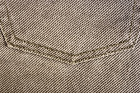 blue denim background on the sides with seams of brown threads
