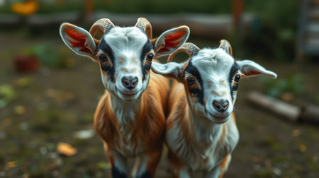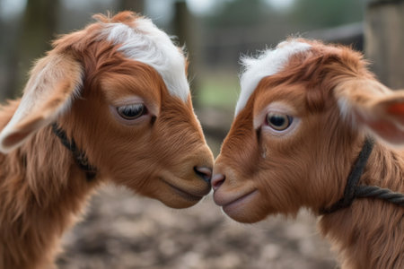 close-up of two tiny goats butting heads with their horns, created with generative ai