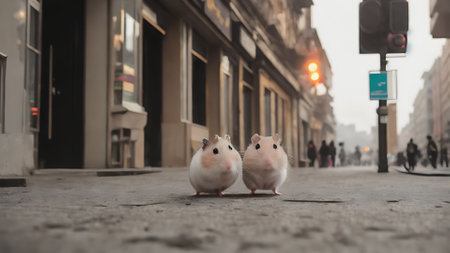 Hamsters walking on the street in Paris, France. Concept of urban life.