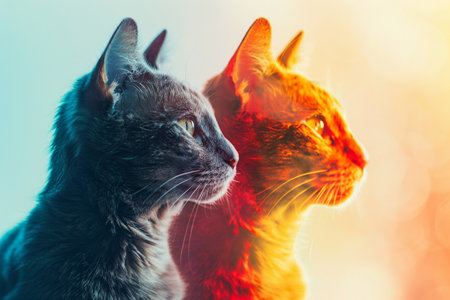Foster cats, rescue stories, colorful and vibrant, Double exposure silhouette with foster cats and foster homes