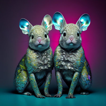 Realistic lifelike chinchilla in disco neon glitter bright outfits, commercial, editorial advertisement, surreal surrealism