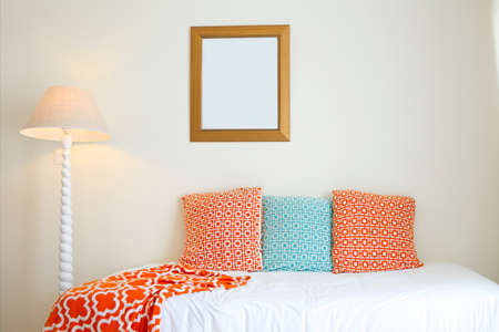 Interior design in villa, house, home, condo and apartment feature bedding, pillow, cushion and painting in bedroom