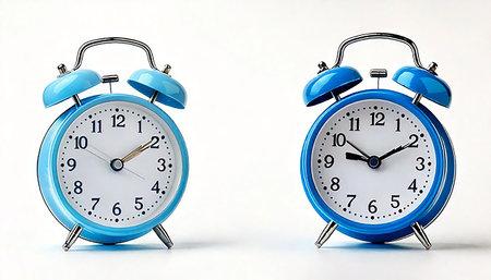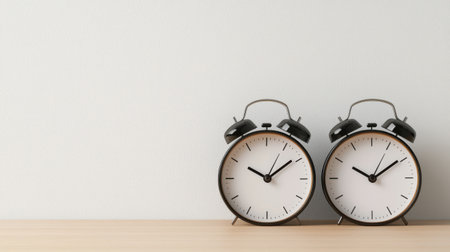 Two Vintage Alarm Clocks on a Simple Wooden Surface with Clean Minimalistic Background for Time Management and Scheduling Concept
