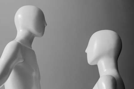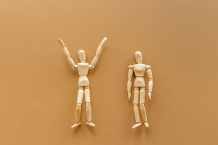 Wooden mannequins on gray background