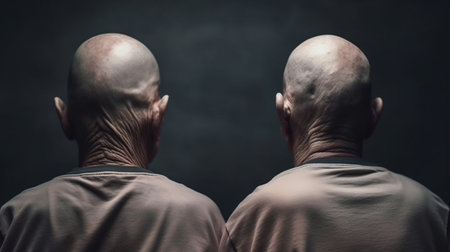 Back view of bald human heads. Generative AI
