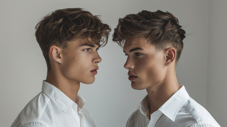 Portrait of a two young boys in white shirts on a floral background
