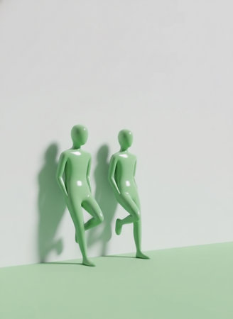Green plastic mannequins on white background. Minimalism