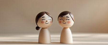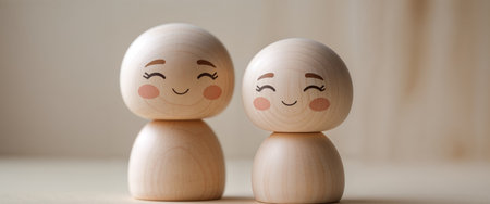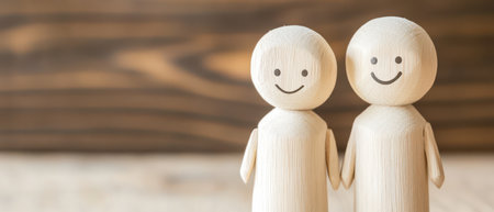 AI Generated. Two wooden figures showing positive emotion through facial expressions