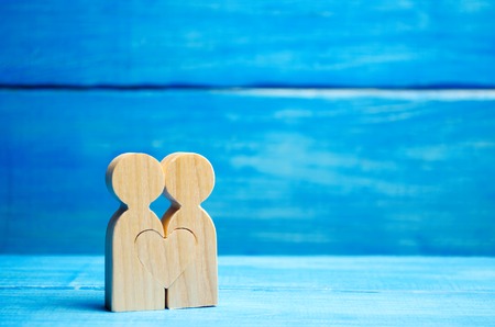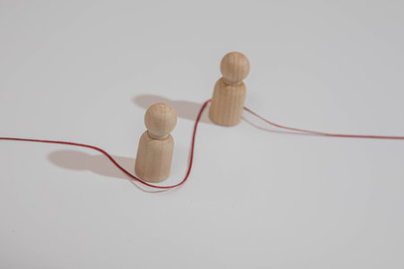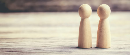 Two wooden figure connection - emotional communication concept