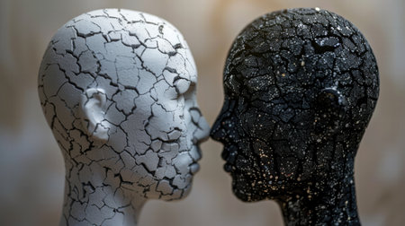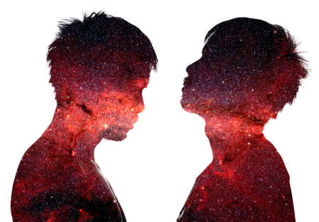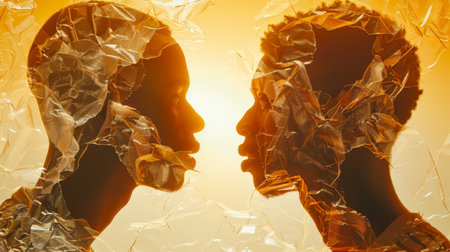 Artistic representation of two human silhouettes facing each other with vibrant color overlays, symbolizing connection and duality.