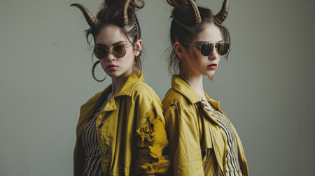 Two Sisters with Horns Hairstyle Strike a Pose in Studio.