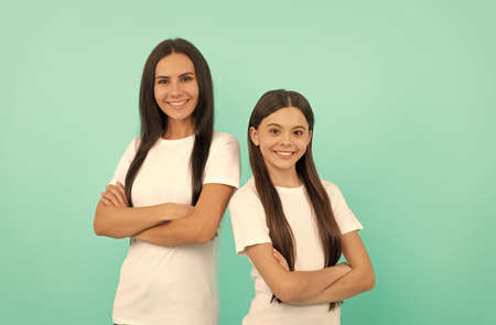 mother and daughter in white shirt. happy childhood and motherhood. concept of friendship.