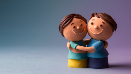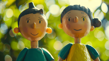 Two plastic figurines of a boy and girl standing next to each other, AI