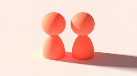 Two figures in silhouette discussing ideas, set against a vibrant red backdrop, symbolizing connection and communication.