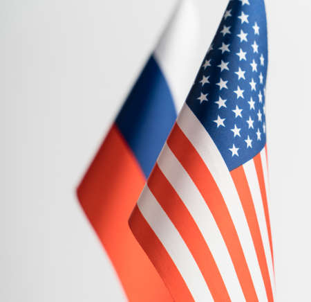 The flags of the USA and Russia on a white background isolated. The concept of policy