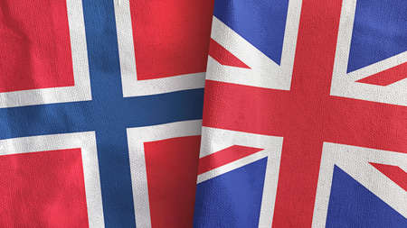 United Kingdom and Norway two flags textile cloth 3D rendering