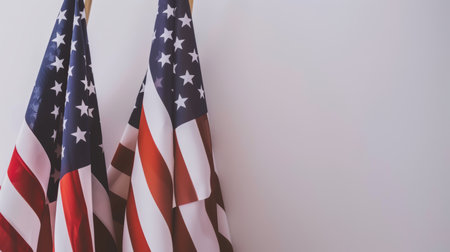 USA Memorial day, Presidents day, Veterans day, Labor day, or 4th of July celebration. USA national flags on white brick wall background with copy space