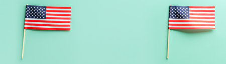 Two American Flags on Toothpicks Against a Light Green Background, Patriotic Symbols for National Holidays AI Generative