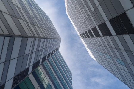 Milan, Italy - October 5, 2019: Low angle view of skyscrapers in Milan office park