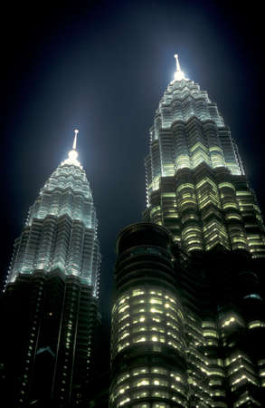 KUALA LUMPUR, MALAYSIA - AUGUST 24: Petronas Twin Towers at night on August 24, 2012 in Kuala Lumpur. Petronas Twin Towers was the tallest buildings (452 m) in the world from 1998 to 2004.