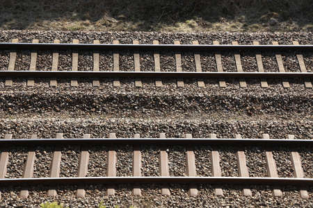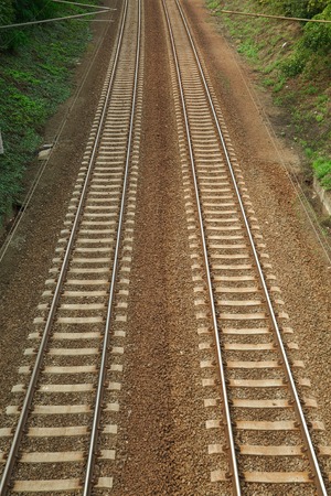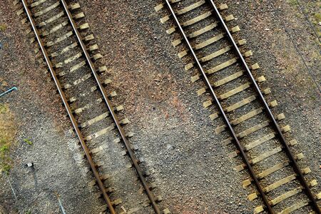 railway tracks on the road, view from above on the railway road, travelling, direction of way