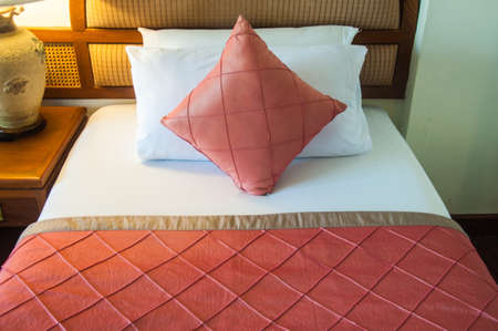 Beautiful luxury white pillow on bed decoration in bedroom interior - Vintage Light Filter