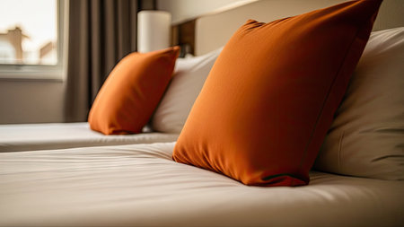 This image captures a cozy hotel room featuring soft pillows and warm lighting, creating an inviting atmosphere perfect for relaxation and comfort.