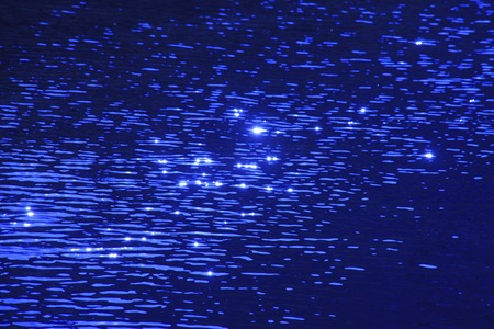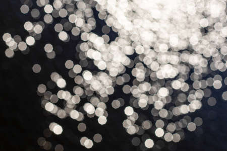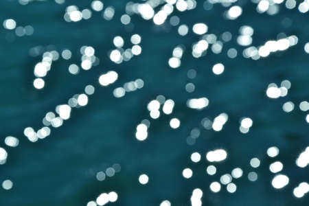Stars in dark water. Out of focus bokeh background of blue water with sun reflections
