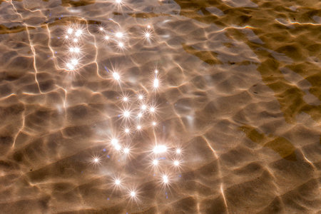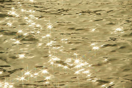 Glare on the water in the form of stars. Natural abstract sea water background.