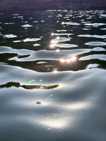 Water background with reflection of sunbeam in the water, Pancharevo, Bulgaria