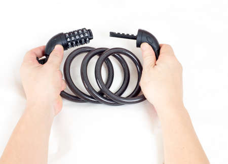 Strong powerful bicycle bike lock chain on a steel pillar with multiple codes combinations security safety of motorcycle